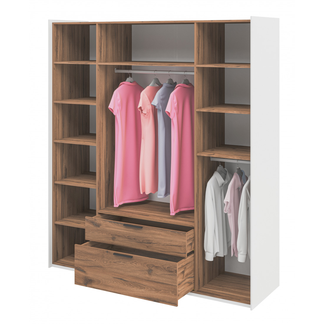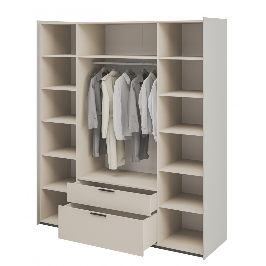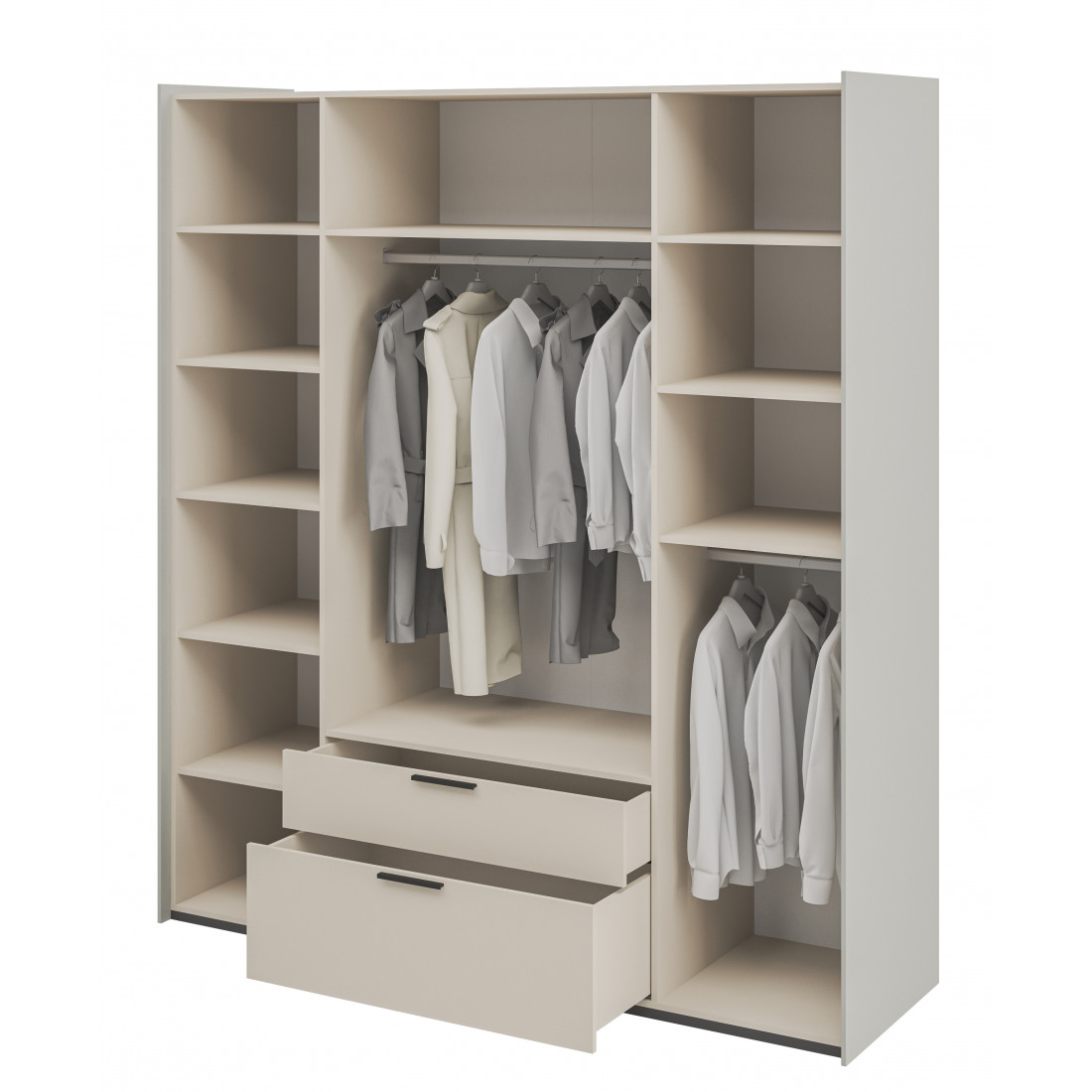 Элегантный шкаф Модена создает изысканную атмосферу в вашей спальни. Предлагается в трех стильных вариантах цветов: Белый-Дуб Элисон, Лунный камень-жемчуг, Металл Бруклин-лунный жемчуг.