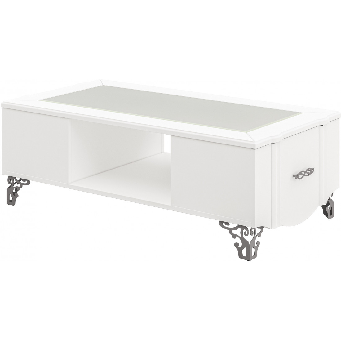 Дизайн гостиной поражает лаконичностью и изяществом. Эффектности ему придает и практические идентичное воспроизведение очертаний узора на гравировке на фигурных хромированных ручках и ножках, фрезеровке по карнизу шкафов-витрин. Купить гостиную София – добавить ощущение сдержанной роскоши в интерьерное решение гостиной.