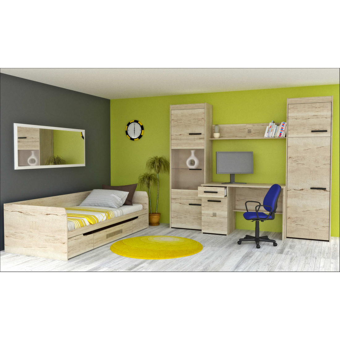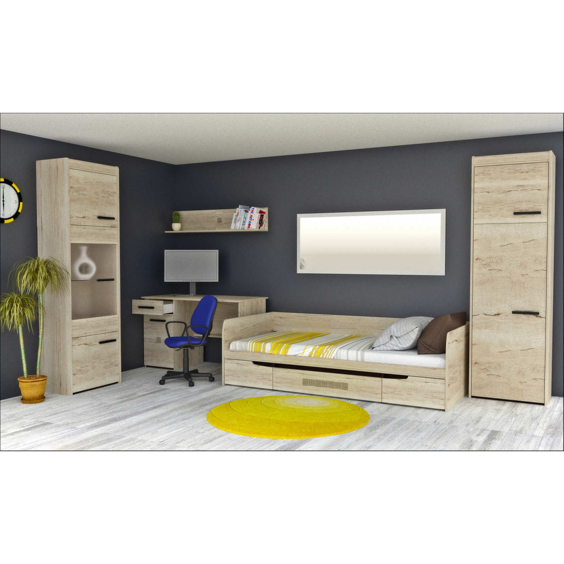 Детская «Мале» - обладательница лаконичного и свежего дизайна. Особое внимание привлекают тактильные ощущения от прикосновения к мебели. Декор и структуры, схожие с натуральным деревом по рисунку и шероховатости, придают глубину и естественность. Широкий спектр модулей позволит эргономично использовать Ваше пространство.