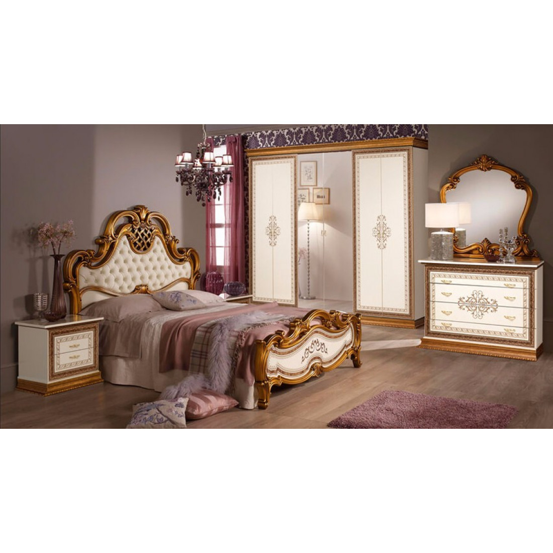 Спальня Анита (беж) композиция 2 от Российской фабрики "ДИА мебель". Выполнена в бежевом цвете с отделкой золотых фасадов. Такой дизайн поможет Вам расслабиться после рабочего дня и насладиться прекрасной атмосферой. Классический стиль придают интерьеру неповторимую роскошь. Изгибающие линии кровати и зеркала придадут легкость и воздушность в спальне. Коллекция "Анита" придаст вашей спальне экстравагантность, и принесет свежие нотки в Ваш дом.